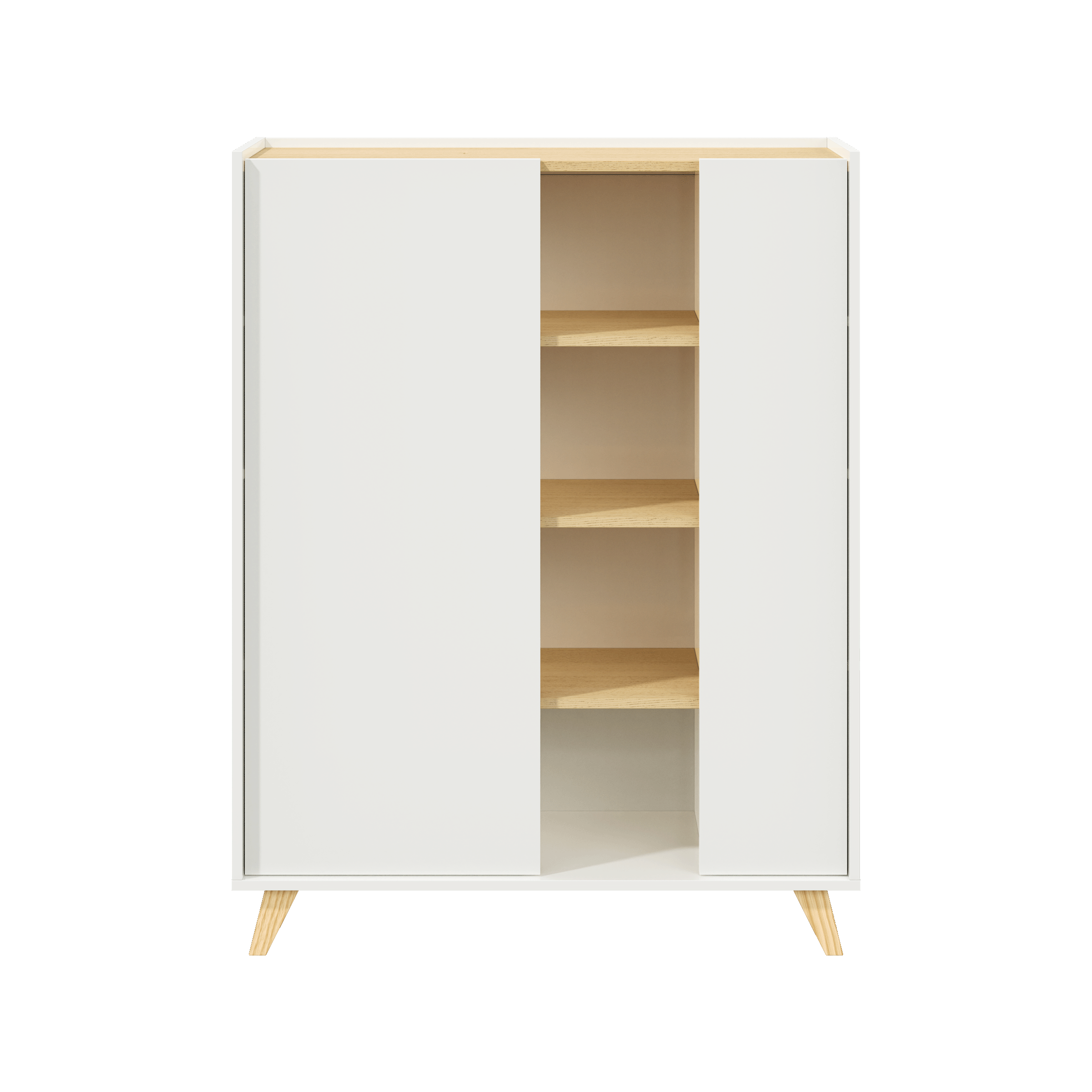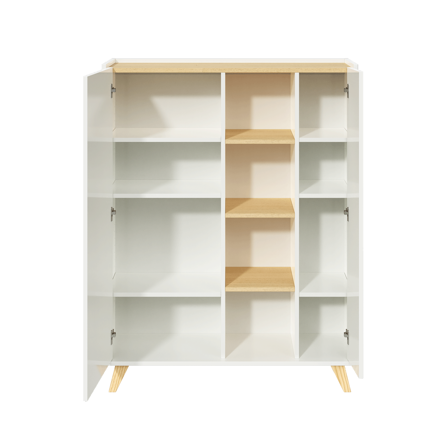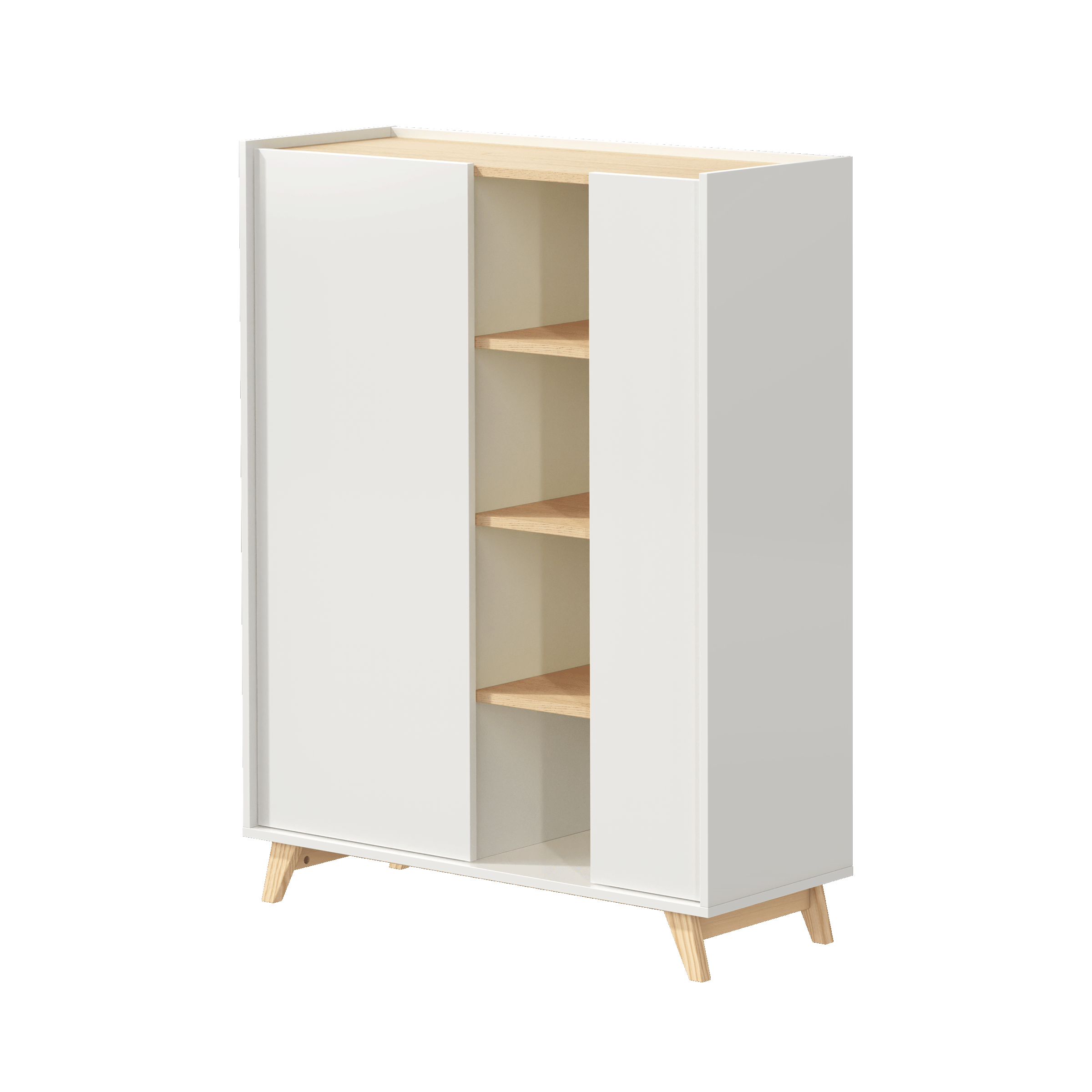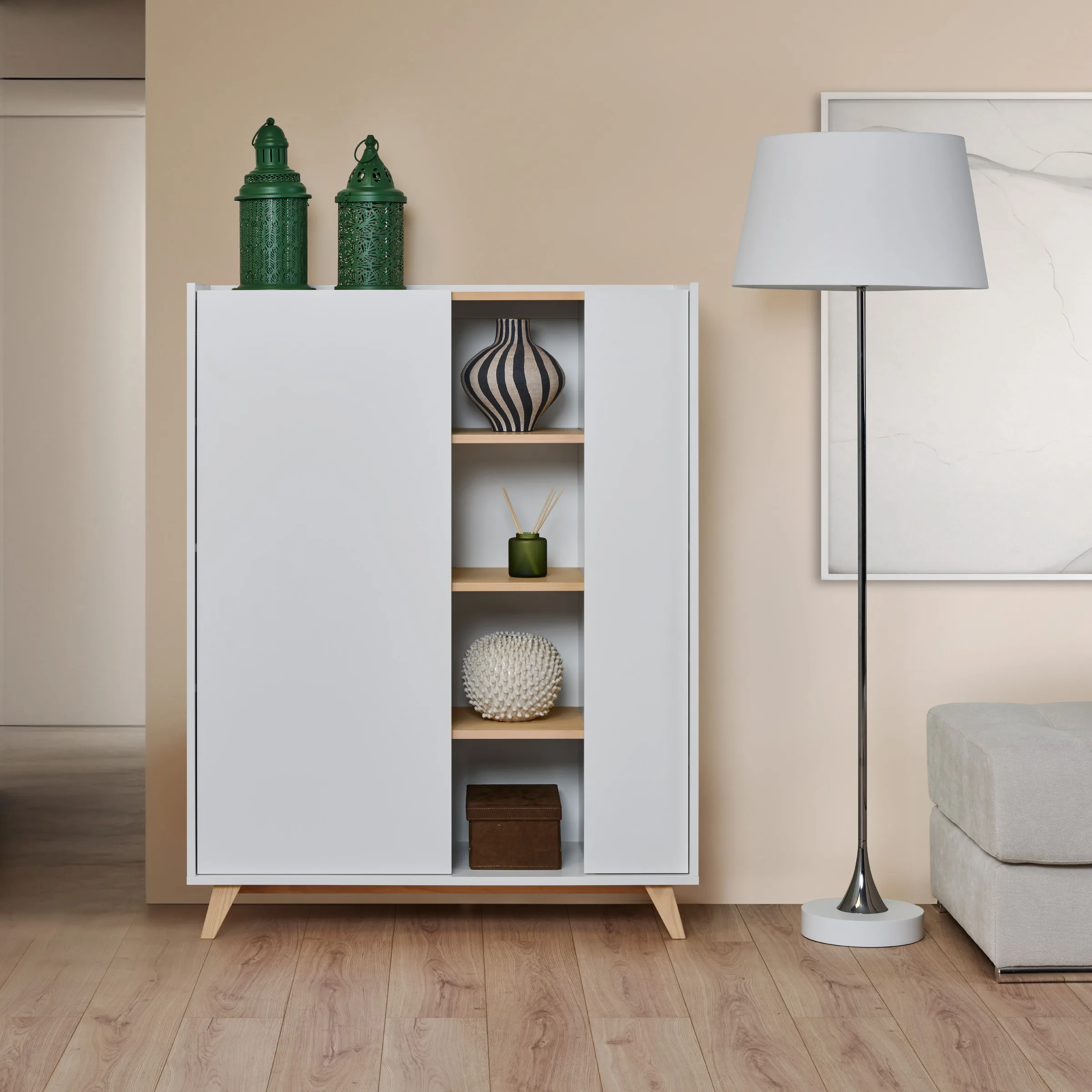 • Os dois compartimentos com porta facilitam a arrumação, enquanto as prateleiras permitem destacar as suas peças decorativas favoritas.