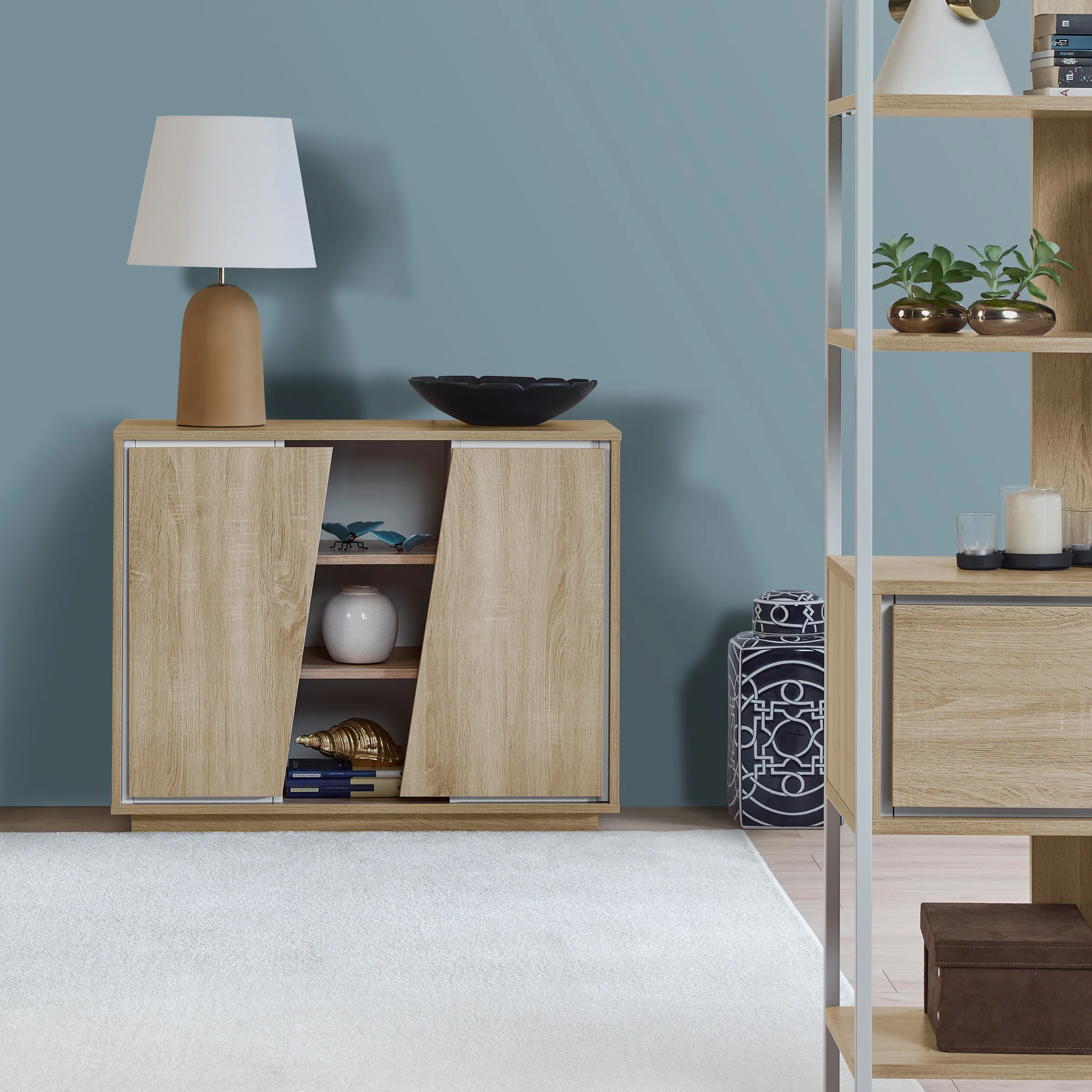 - As suas linhas depuradas são realçadas pela sobriedade do carvalho (carvalho cinza com detalhe preto ou carvalho natura com detalhe branco).
