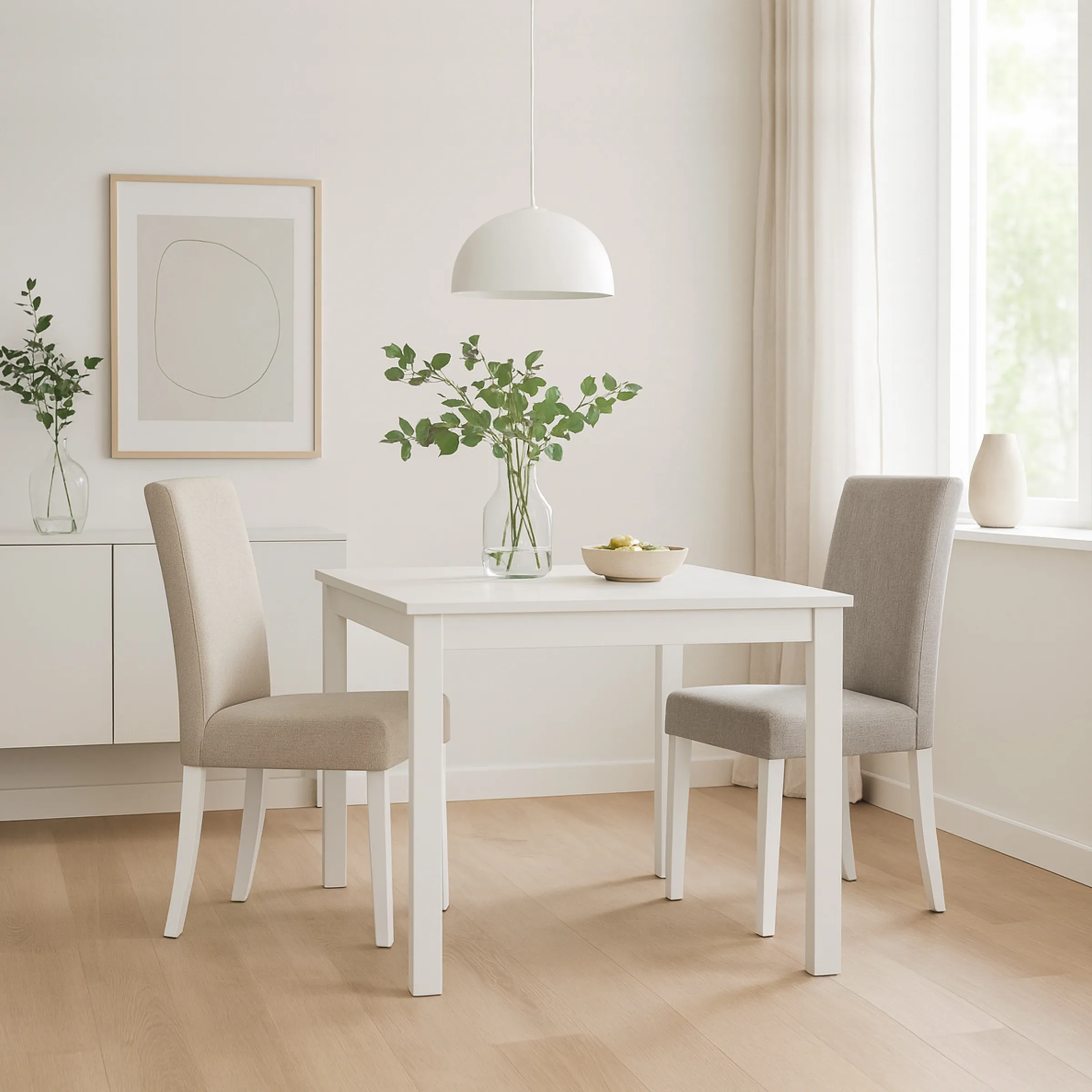- Pernas lacadas a branco, que acrescentam um toque moderno e leve ao ambiente.