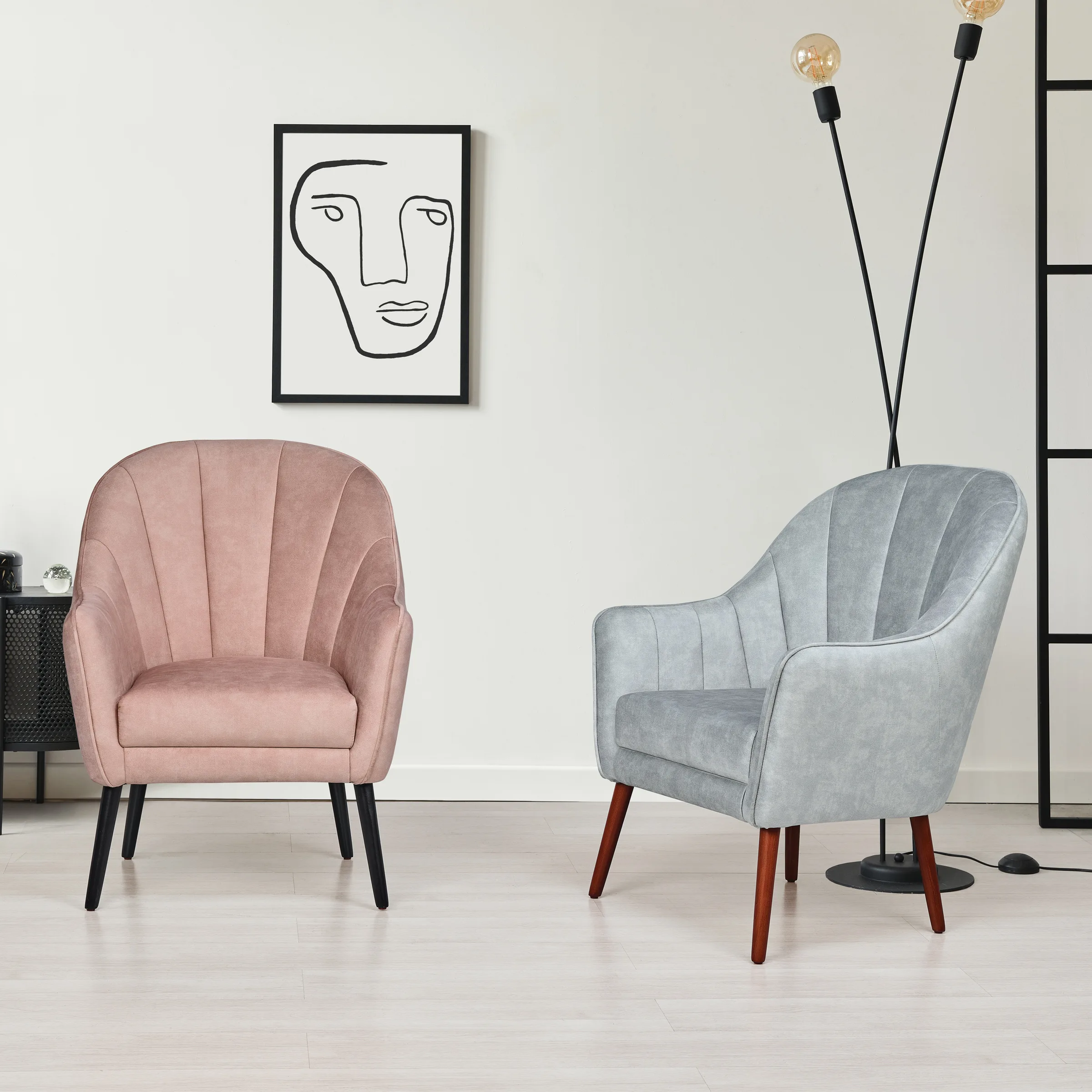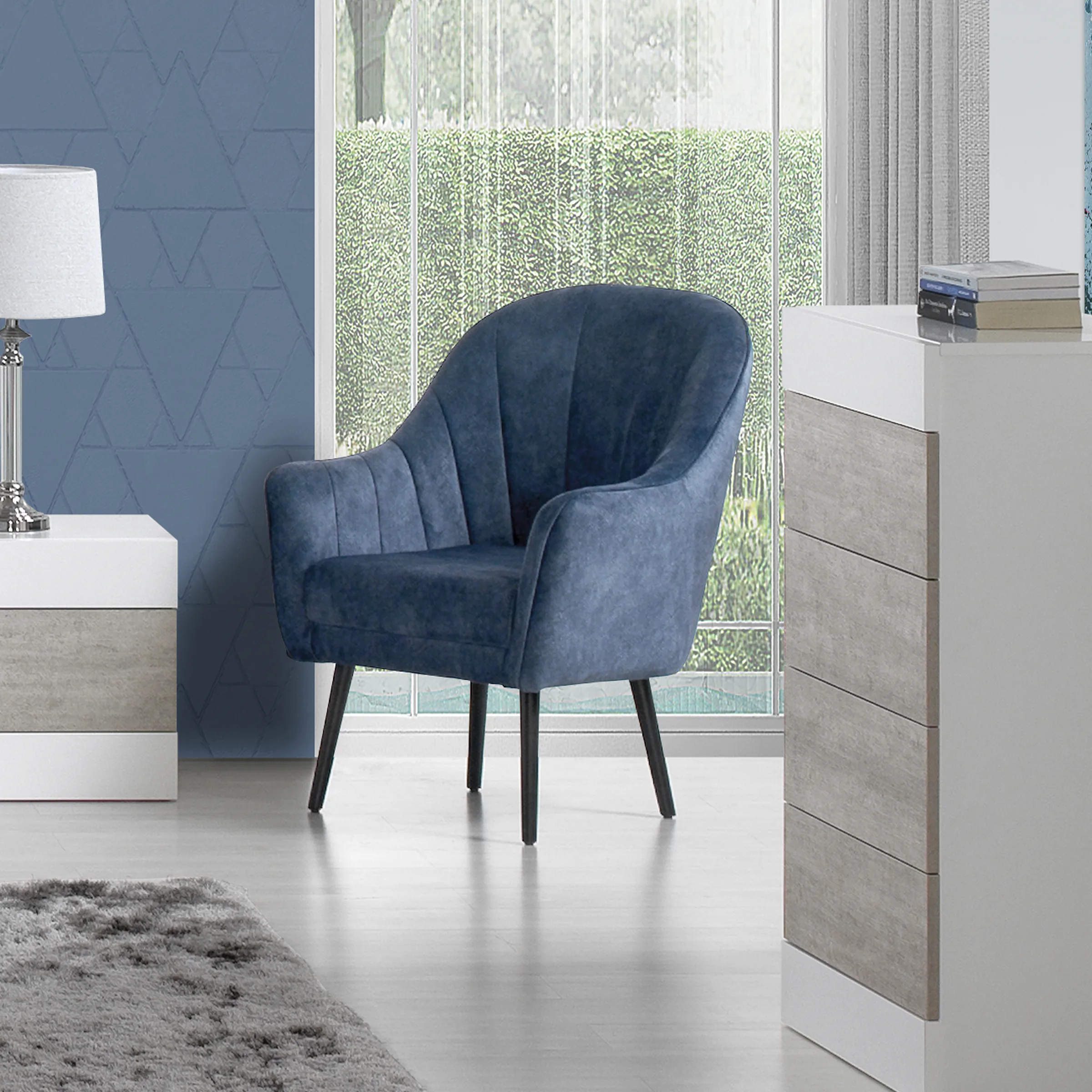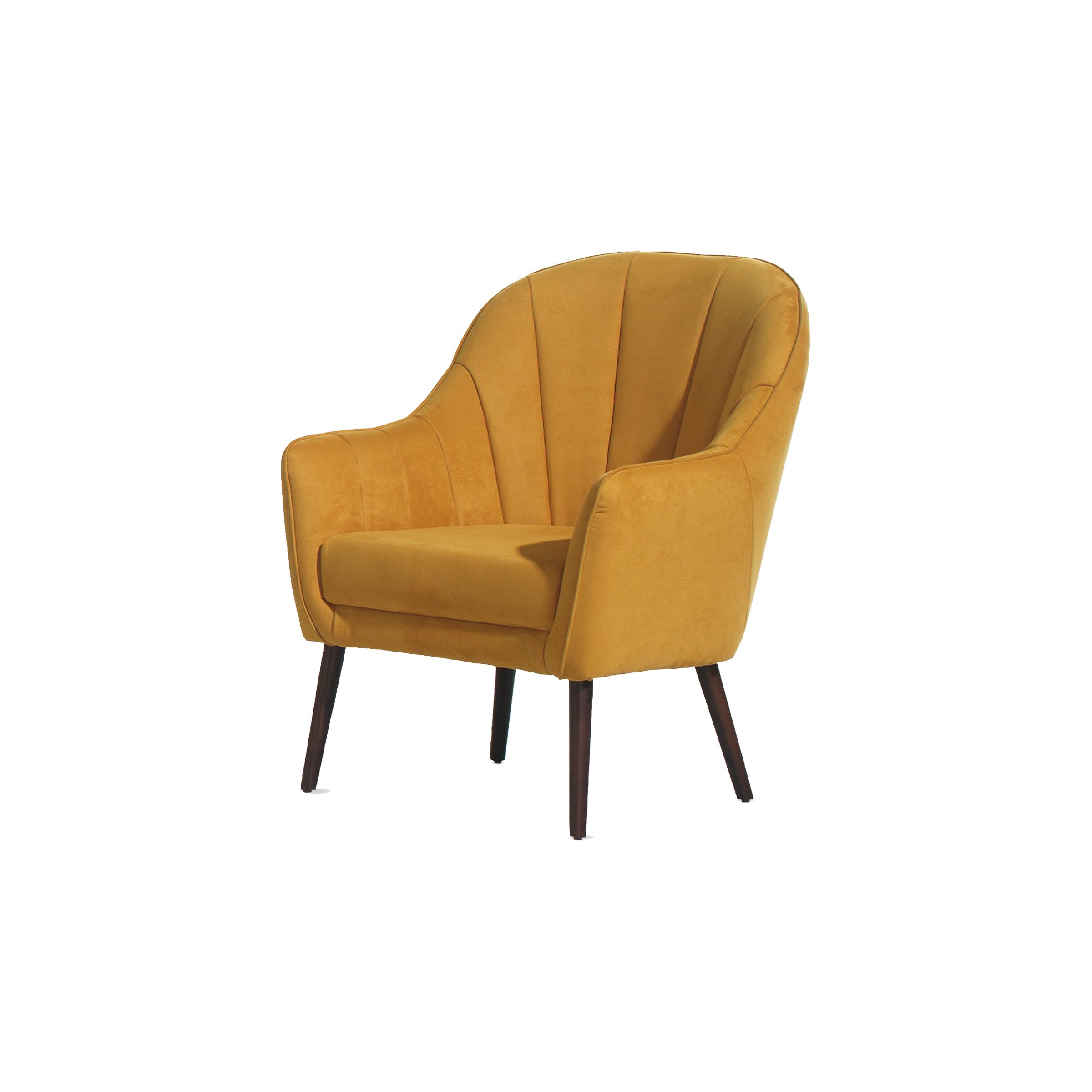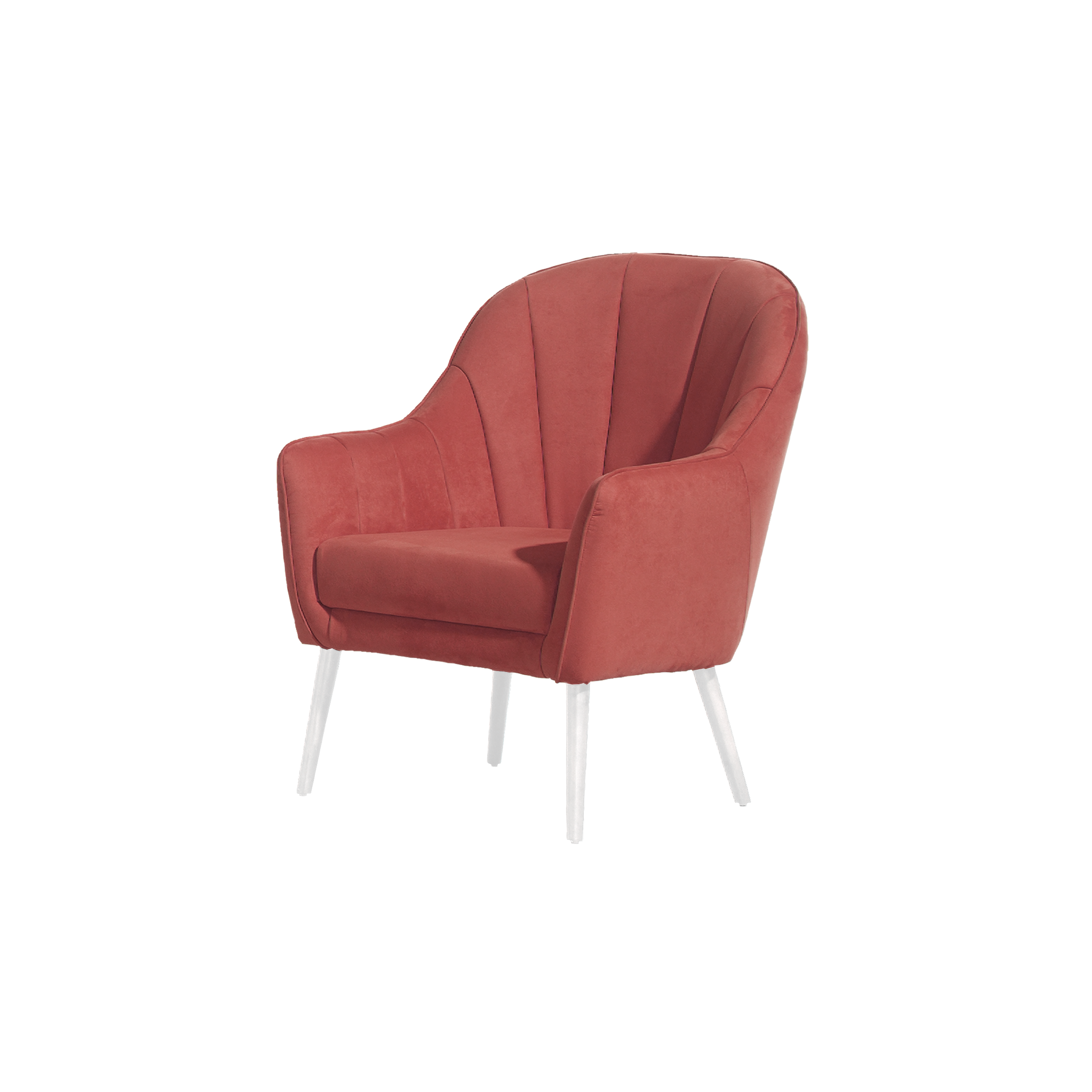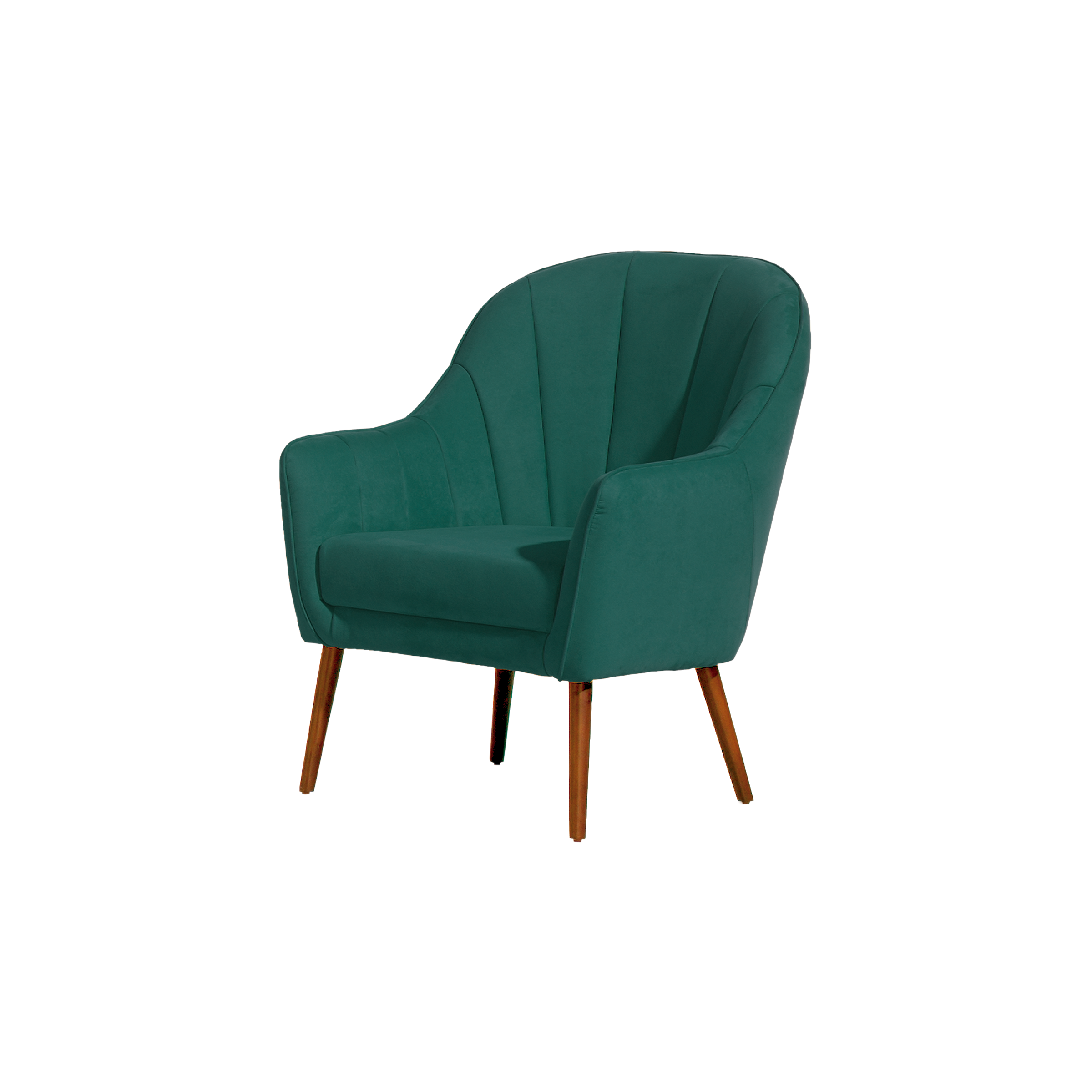 - Cadeirão estofado, com costuras de efeito concha.