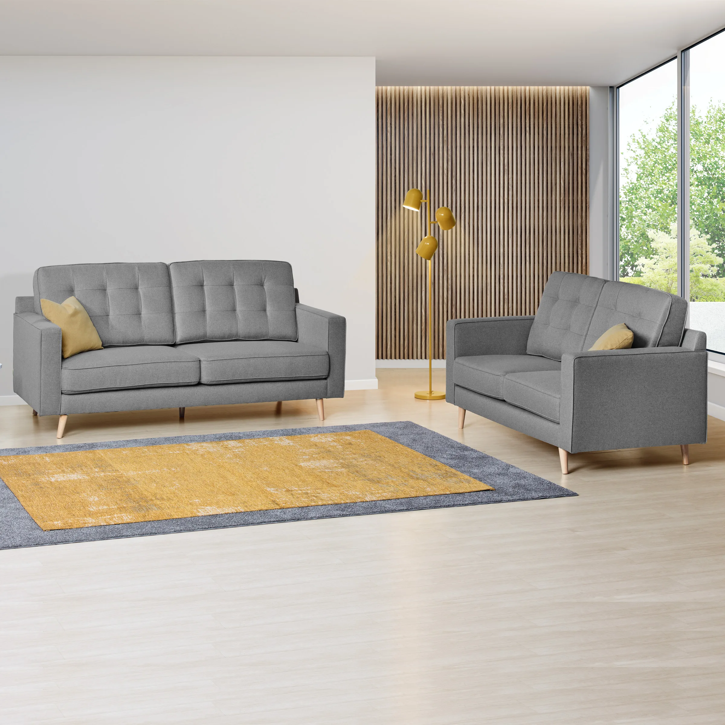 Descubra o nosso sofá de 2 ou 3 lugares, com almofadas soltas e pés de madeira. O modelo Damon oferece estilo, conforto e design. Conheça as características aqui.