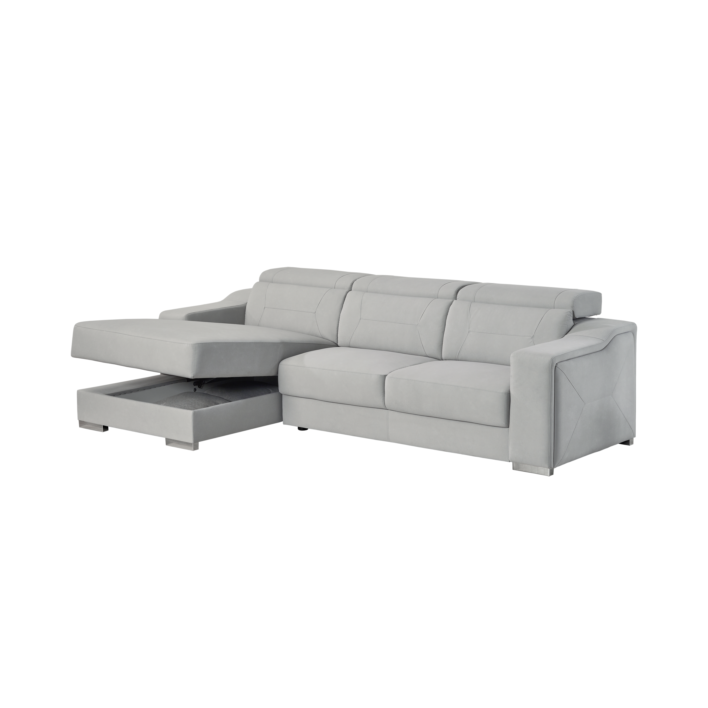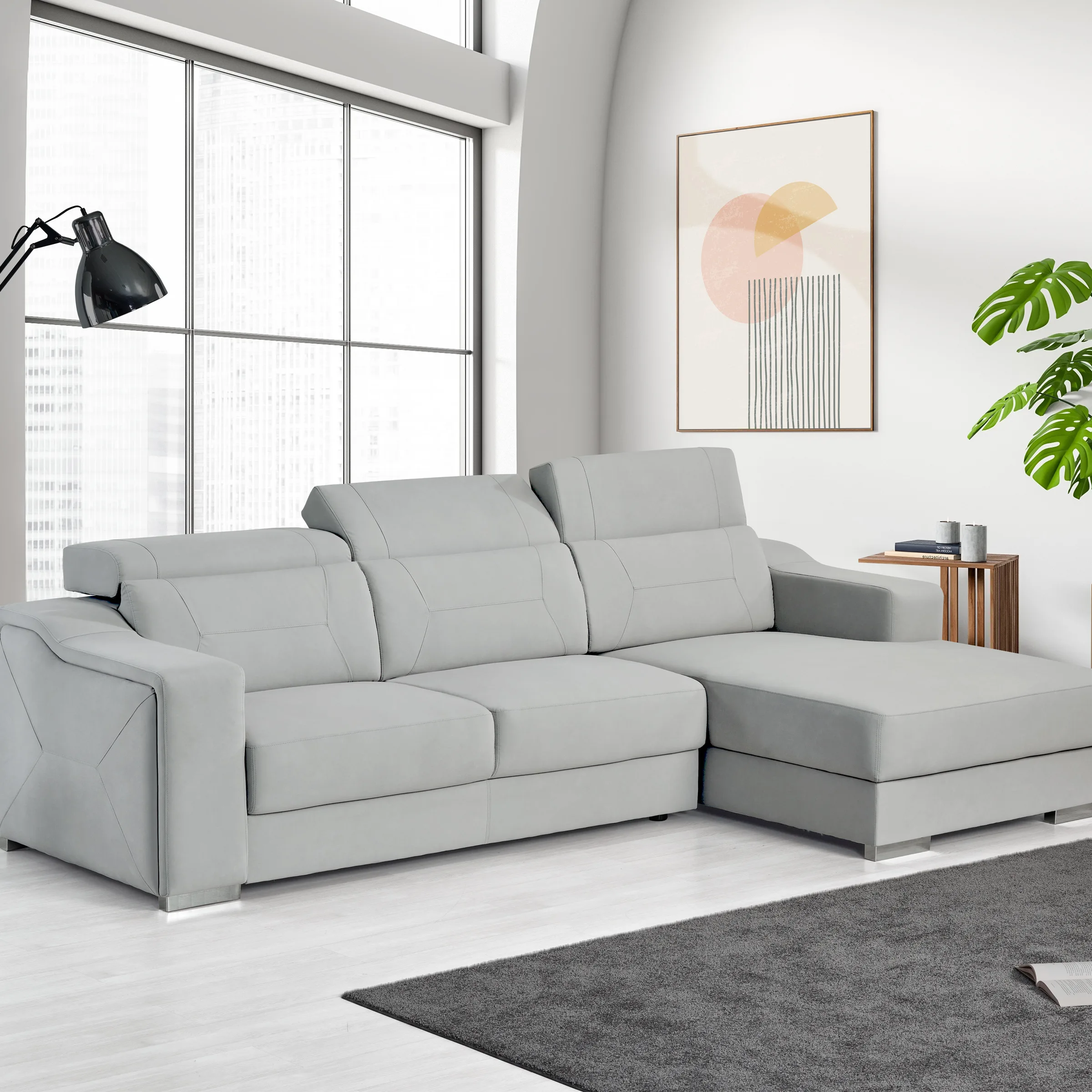 Sofá de 3 lugares com costas reclináveis e chaise longue