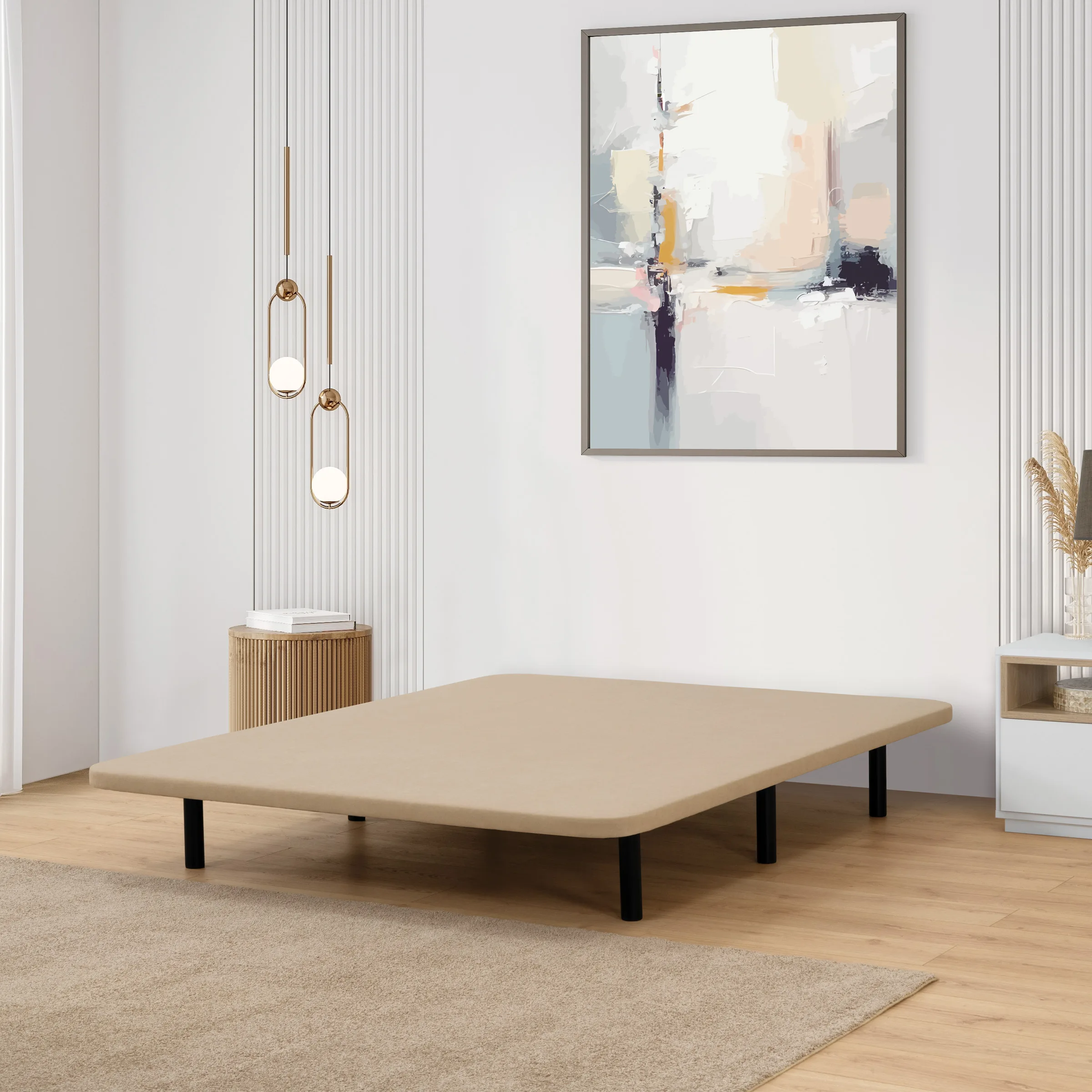 - Tampo com suporte em MDF, oferecendo estabilidade e apoio uniforme ao colchão.