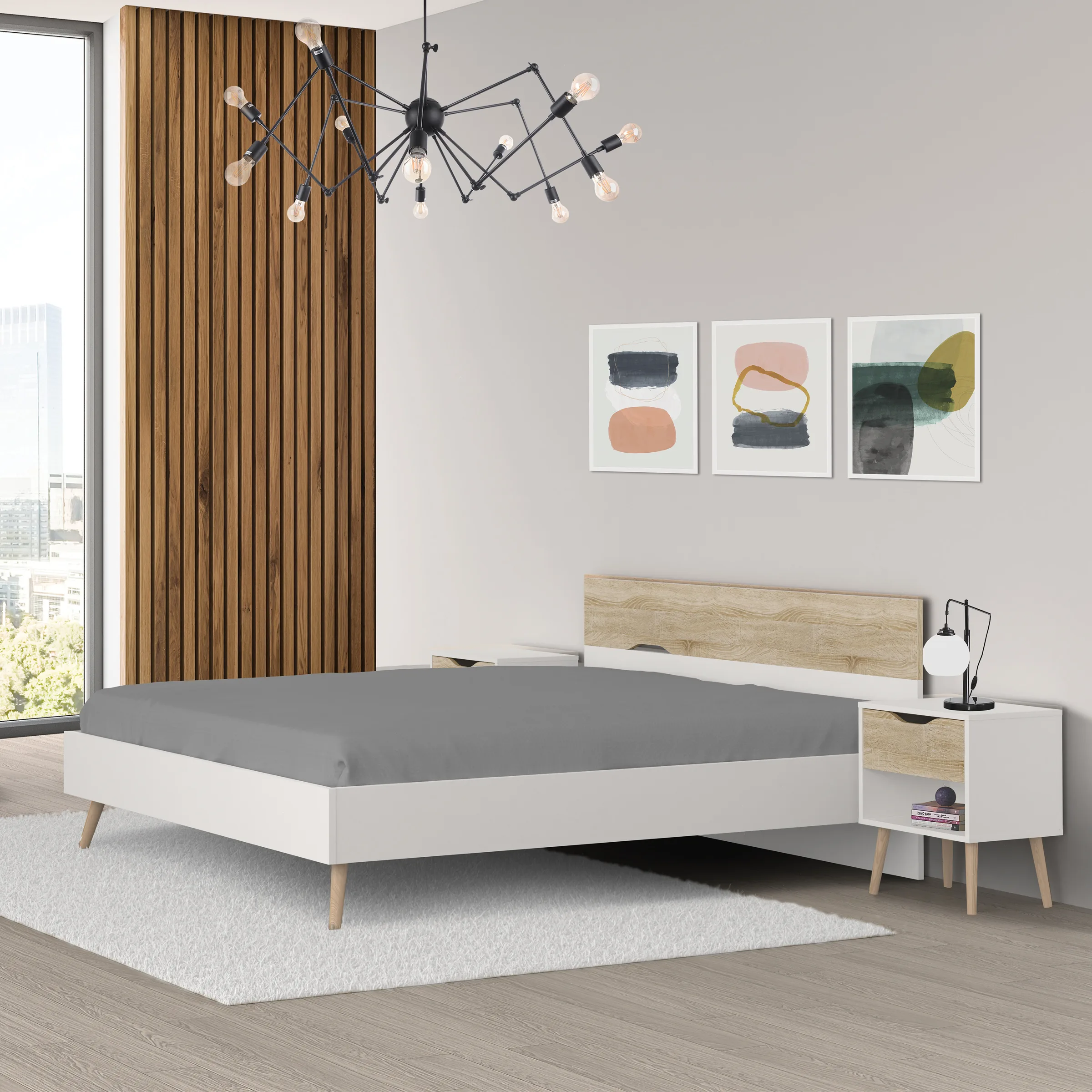 - Conjuga os acabamentos branco com o carvalho natura, ideais para conferir um ambiente acolhedor e natural à decoração do quarto.
